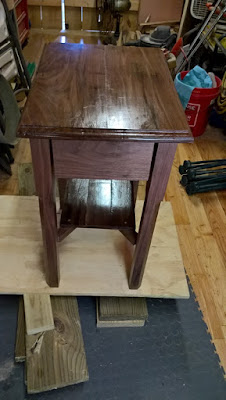 For this walnut end table I did a bit of research on the best finish to apply that would be durable and shiny. Get me that look I wanted. I ended up combining several techniques into something I'm going to repeat. A lot of these pictures are going to look exactly the same, but there are different types of products and techniques applied to the wood instead. So here's what I came up with.